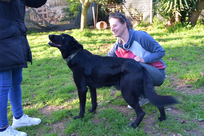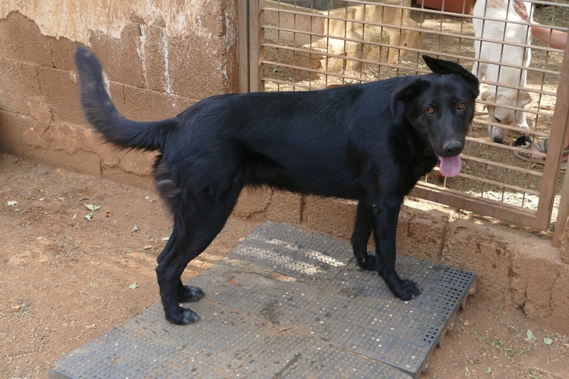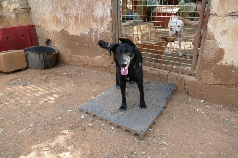 Zoe ist eine wunderschöne schwarze Hündin mit lustigen Ohren, die ihr einen ganz besonderen Ausdruck verleihen. Sie wurde völlig verwahrlost und voller Zecken auf einem Feld gefunden und kam so ins Tierheim Copertino. Trotz dieser traurigen Erfahrung ist Zoe eine offene, freundliche und menschenbezogene Hündin geblieben.