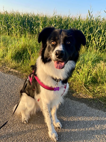 Willow kennt bereits die Grundkommandos Sitz, Platz, Bleib, Schau und Pfote geben. Der Rückruf funktioniert in ruhiger Umgebung schon recht gut, sollte aber weiter geübt werden, da Willow einen leichten Jagdtrieb hat. Das Autofahren meistert er ohne Probleme, und alleine bleiben kann er schon für etwa zwei bis drei Stunden. An der Leine läuft Willow schon recht ordentlich, allerdings sind Hundebegegnungen für ihn noch aufregend. Hier braucht er weiterhin liebevolle, klare Anleitung, um mehr Gelassenheit zu entwickeln.