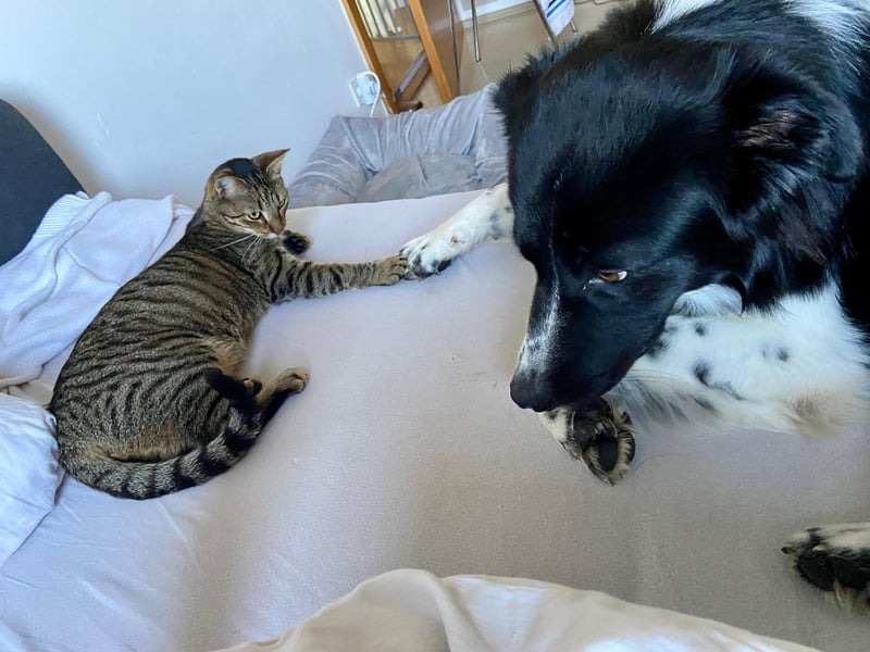 Willow versteht sich gut mit anderen Hunden und auch mit Katzen, daher kann er gerne in ein Zuhause mit weiteren Tieren ziehen. Wir suchen für ihn hundeerfahrene Menschen, die ihm Sicherheit, Struktur und liebevolle Führung geben, damit er seine Unsicherheiten Stück für Stück ablegen kann.