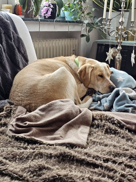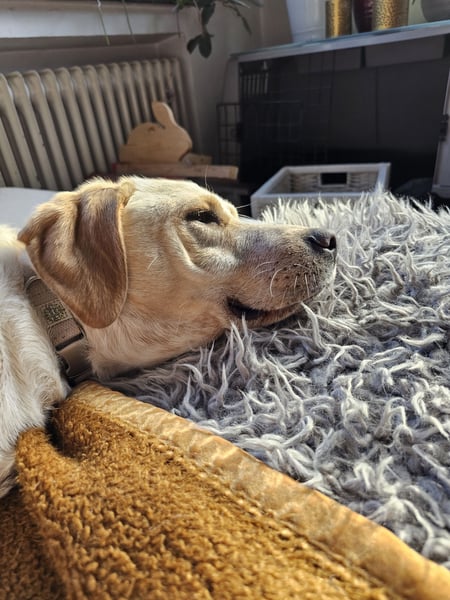 Nacho hat mittlerweile eine gute Beziehung zu seiner Pflegefamilie entwickelt und hat sich gut eingelebt. Anfangs zeigte er sich öfters unruhig im Haus und lief viel auf und ab. Mit der Zeit hat das deutlich nachgelassen. Auch kann er entspannt liegen bleiben, wenn man den Raum verlässt. Er lebt hier in einer Familie mit Grundschulkind, Katzen und weiteren Hunden zusammen und zeigt sich hier allen Zwei- und Vierbeinern gegenüber freundlich, sozial und sehr verschmust.
