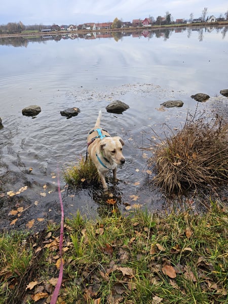 Spaziergänge liebt Nacho über alles und das bei jedem Wetter. Man kann schon gut mit ihm durchs Dorf laufen, ohne große Unsicherheit. Er hat keine Probleme mit Umweltreizen. Pfützen findet er großartig, Baden ebenso, und generell ist er gerne in Bewegung und scheint immer gute Laune draußen zu haben. Nacho spielt auch gerne mit Spielzeug.