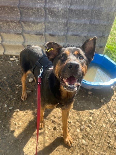 Unsere Mellow wurde im Mai 2025 aus dem öffentlichen Tierheim in Lugoj gerettet.