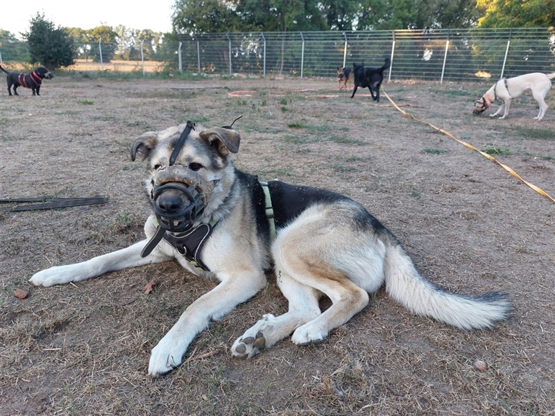 Janno ist einer der Hunde, die unüberlegt als Welpe angeschafft wurden. So süß und flauschig er als Welpe wohl auch gewesen ist, der Janno ist ein großer Bursche geworden, der gerne beschäftigt werden möchte. Man war schlichtweg mit dem Hund überfordert und so hat Janno leider wenig gute Erfahrungen mit Menschen gemacht. Das zeigte sich deutlich in seinem Verhalten. Wir konnten für ihn einen Platz in der Trainingspension Vogelsang bei Salzwedel finden, in der eine erfahrene Trainerin mit ihm arbeitet.