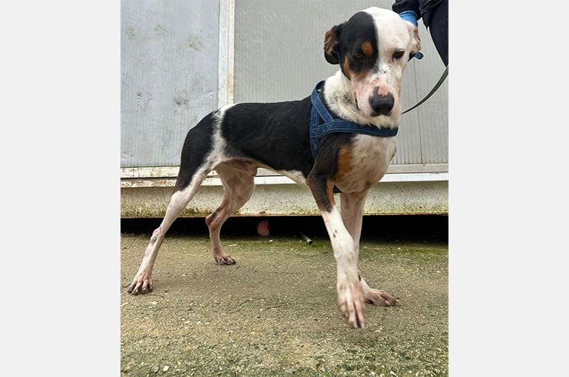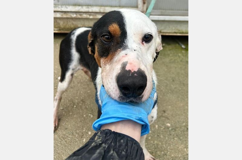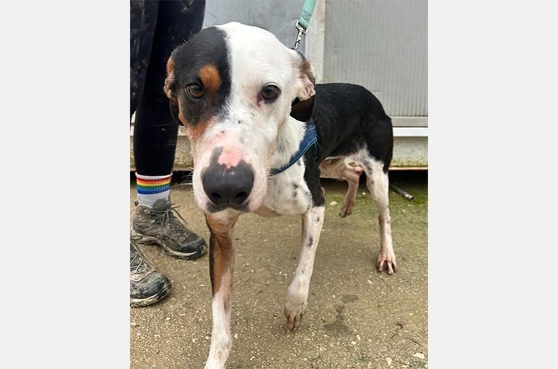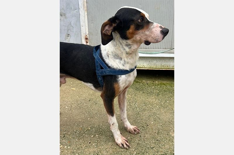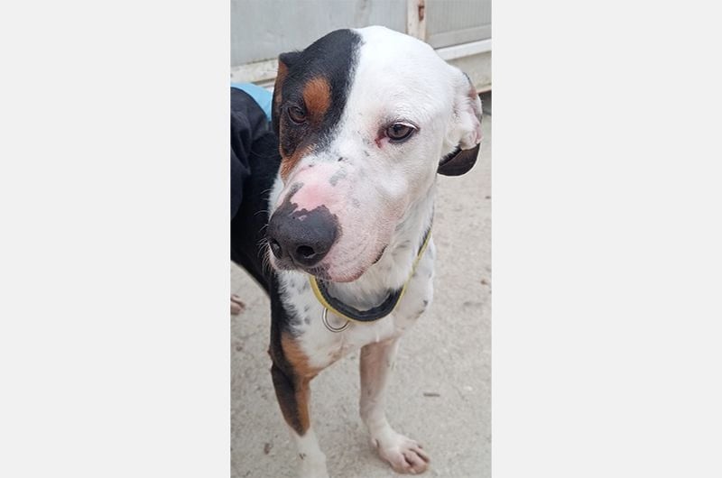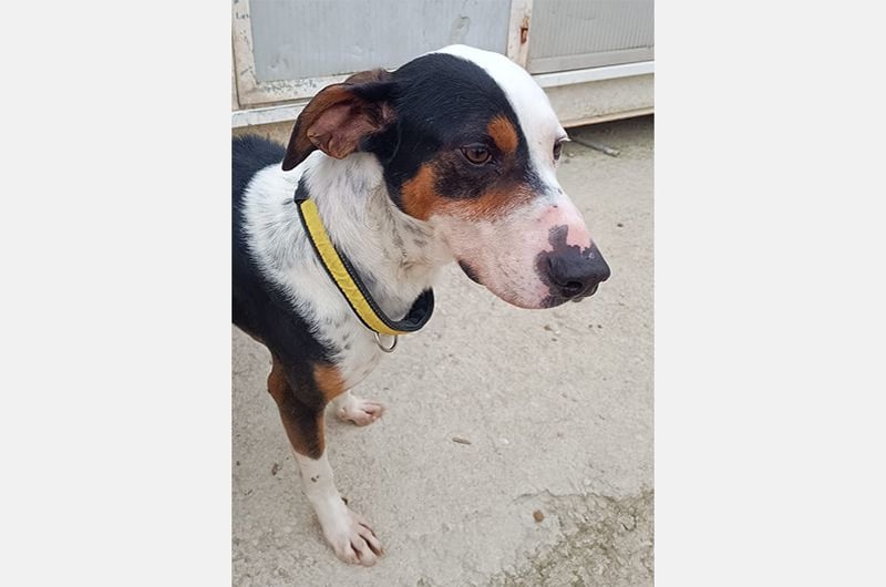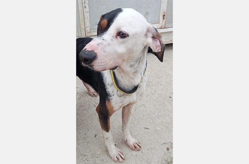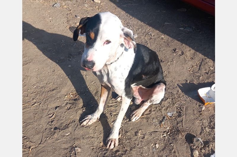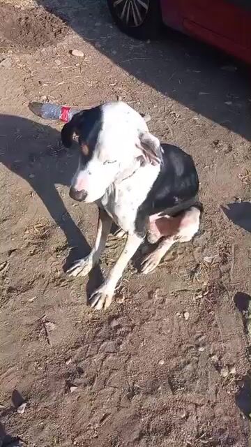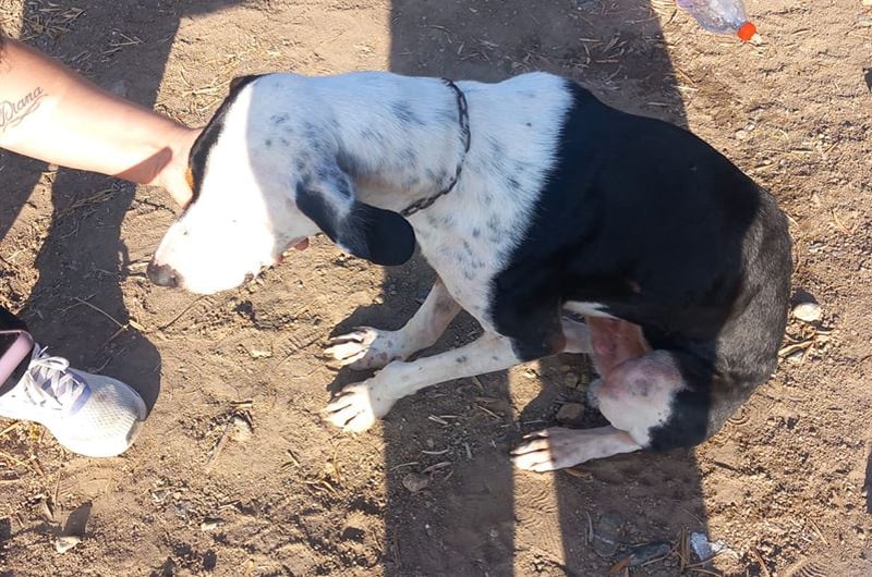 Pipo wurde von einem Paar gefunden, das auf einer Straße eines nahegelegenen Dorfes unterwegs war. Dort, sitzend, fast unfähig sich zu bewegen, kraftlos, erschöpft und bis auf die Knochen abgemagert... dort blieb er regungslos. Man brachte ihn sofort zum Tierarzt und entdeckte mit Entsetzen und gleicher Empörung, dass die Kette, die er um den Hals trug, in sein Fleisch eingeschnitten war.