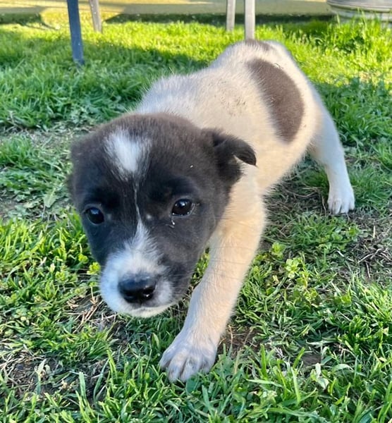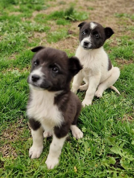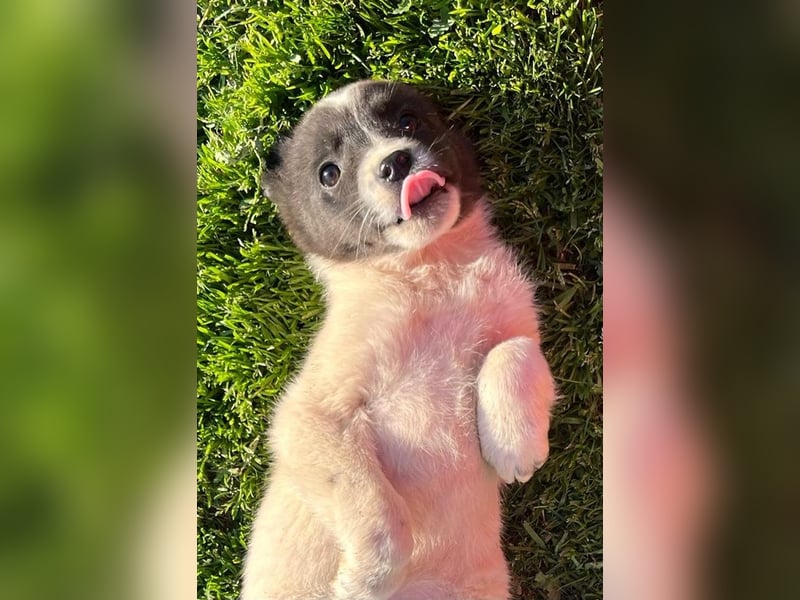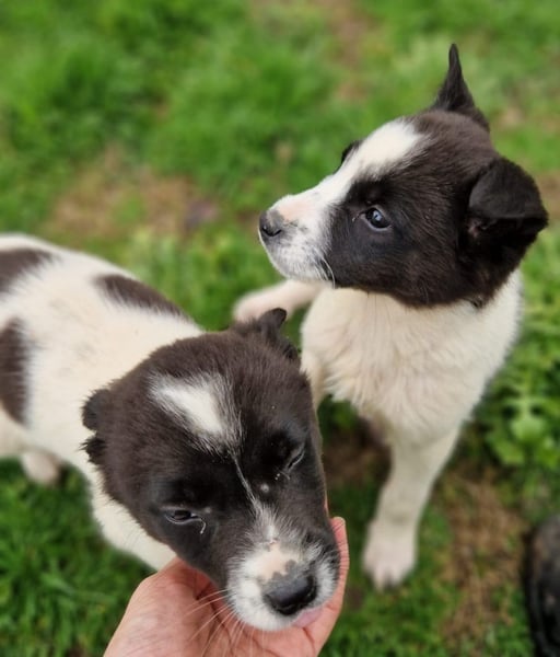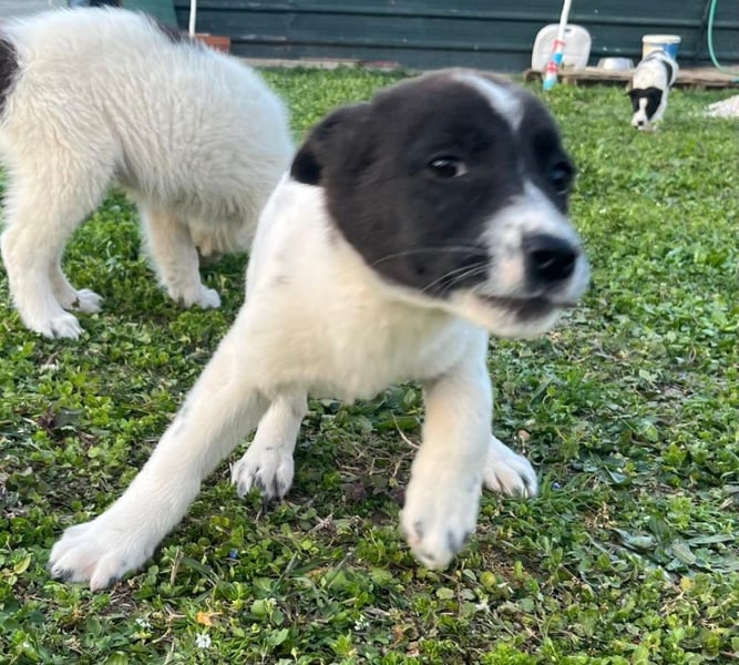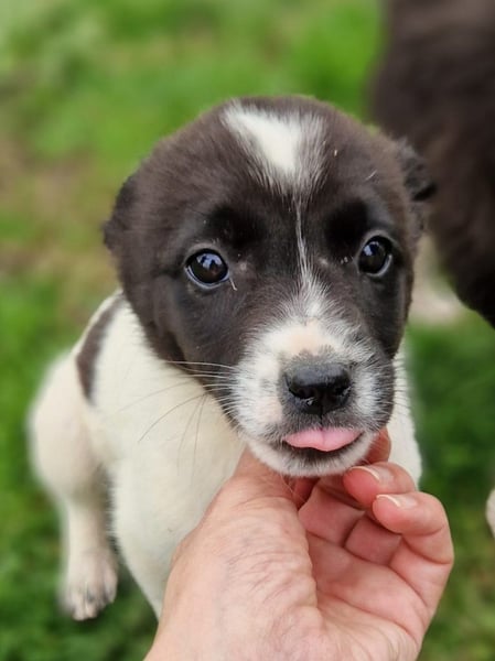 Dotties Geschichte: Als eine der Tierschützer*innen von Pawmates Rescue Drama zwei ihrer Schützlinge besuchte, erwartete sie nicht, dass mitten im strömenden Regen sechs winzige Welpen fröhlich durch das nasse Gras direkt auf sie zugestürmt kommen würden. Vier Mädchen, zwei Jungs, ungefähr acht Wochen alt, klitschnass, voller Vertrauen und seeehr hungrig.