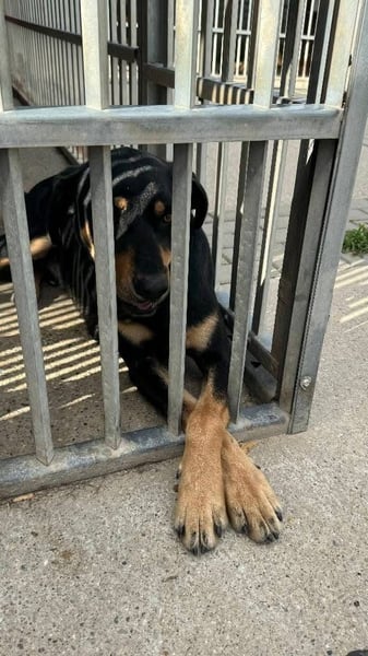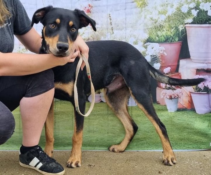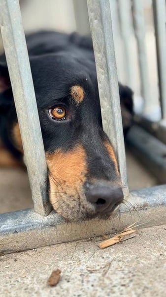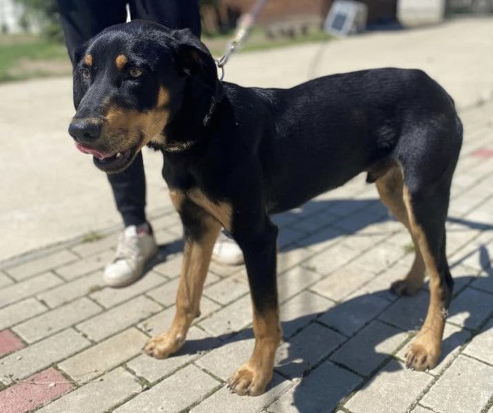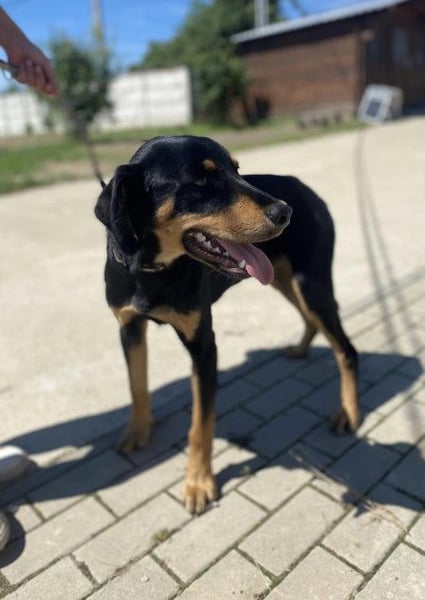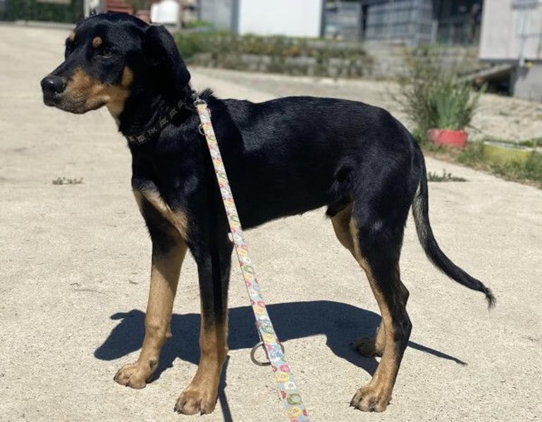 Anubis wurde im Alter von ca. 6 Monaten umherirrend auf der Straße gefunden und kam so ins Tierheim. Im Schlepptau hatte er einelange und schwere Kette, was darauf schließen lässt, dass er seine ersten Monate ein trostloses Leben als Kettenhund verbringen musste.