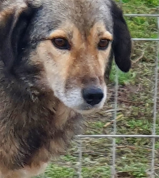 Ronja gehört zu den älteren Hunden und man spürt, dass das Leben es bisher nicht gut mit ihr gemeint hat.