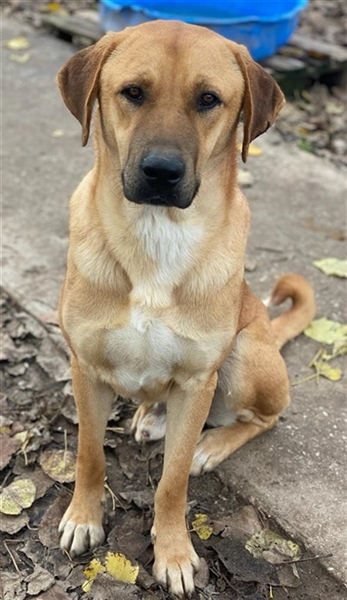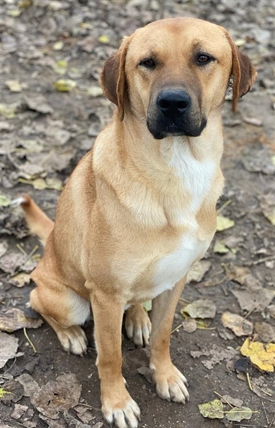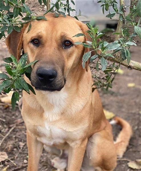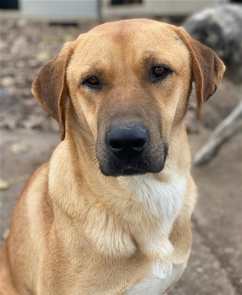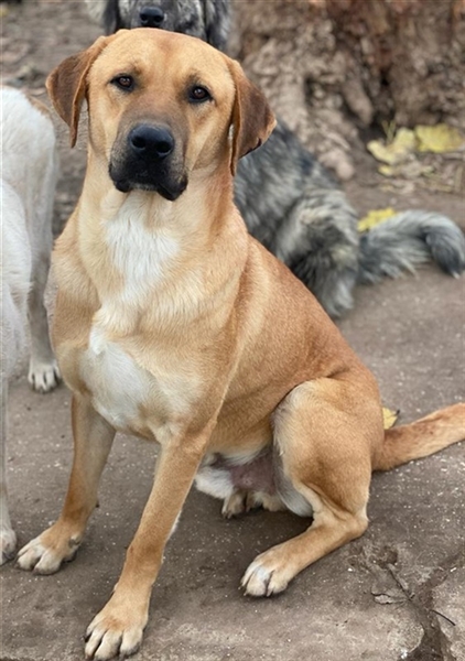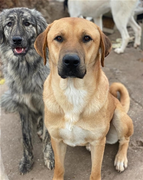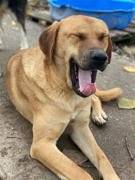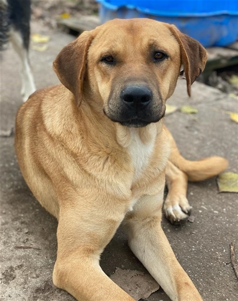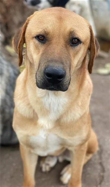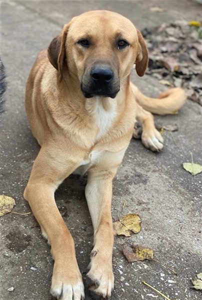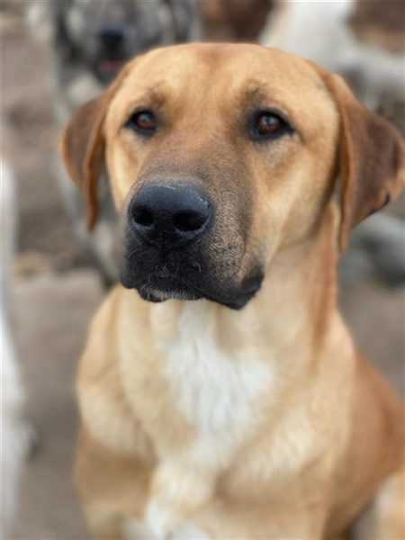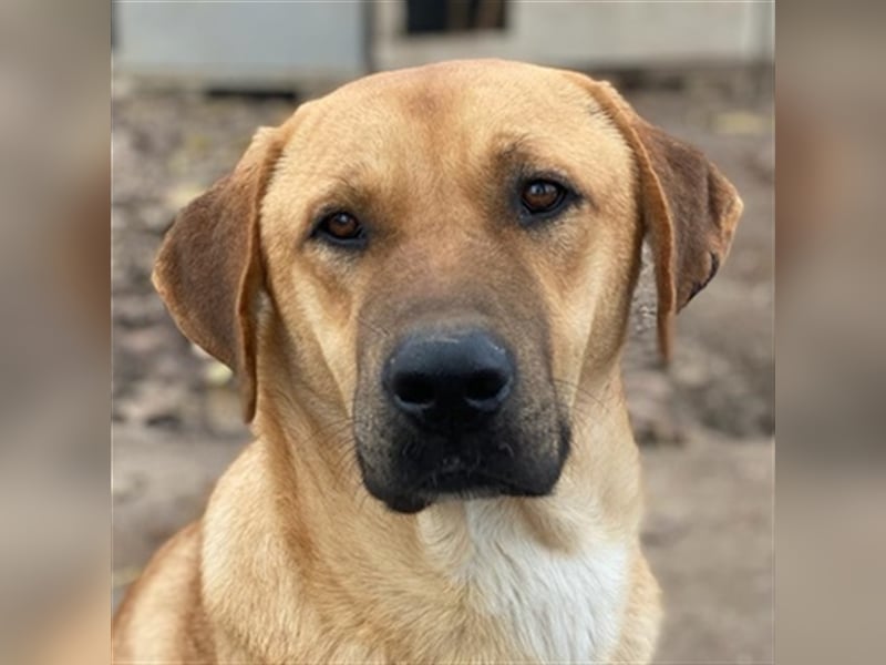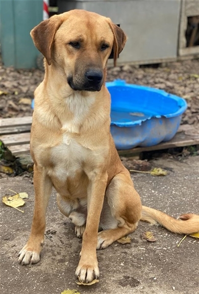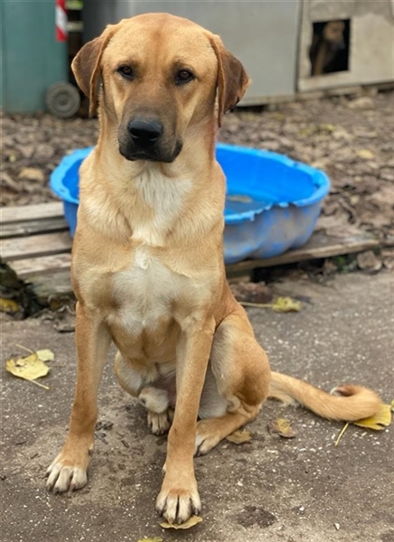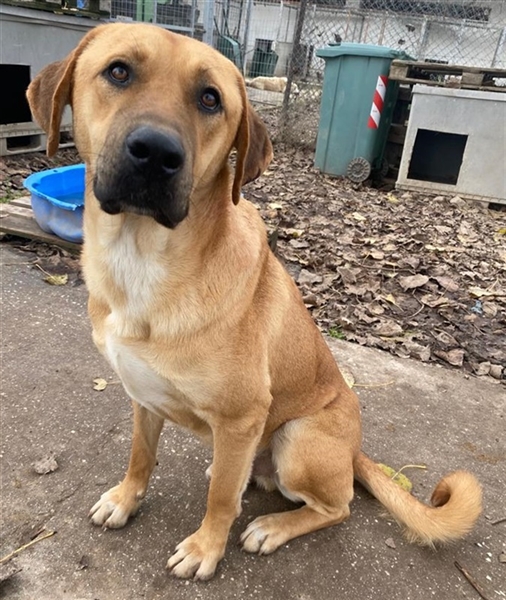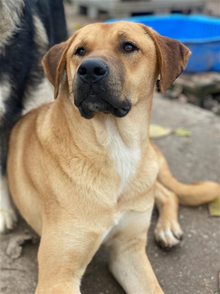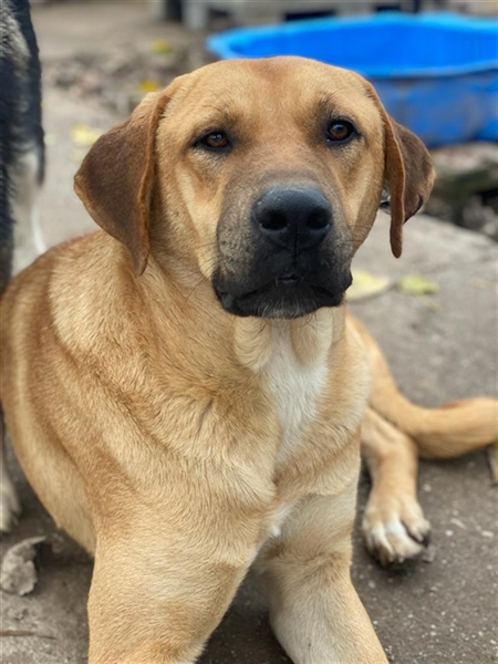 Nobu ist ein echtes Goldstück, sein Fell schimmert in einem warmen Goldton mit der griechischen Mittagssonne um die Wette. Dabei sind sowohl seine Ohren als auch seine hübsche Schnauze etwas dunkler gefärbt. Seine schokobraunen Augen lassen den bildschönen Rüden charmant und liebevoll wirken. Mit seinen großen, tapsigen Pfoten erkundet der neugierige Riese seine Umgebung.