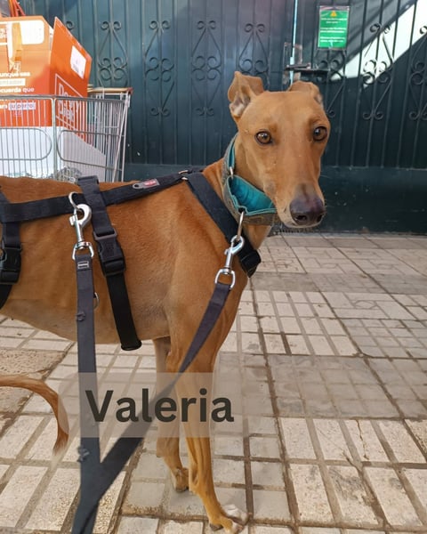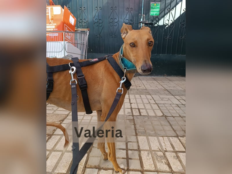 Valeria wurde nach einem Hinweis als verlorene oder ausgesetzte Galga außerhalb von Granada entdeckt. Sie war in akuter Gefahr, überfahren zu werden, ließ sich jedoch nicht anfassen. Erst nach fast einem Monat und mit Hilfe einer Lebendfalle konnte sie gesichert werden. Sie hatte keinen Chip und keine Identifikation.