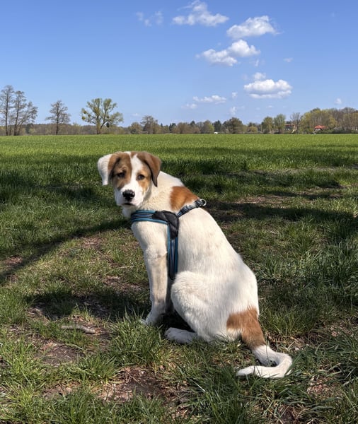 Typisch für sein Alter ist Alfred neugierig, verspielt und entdeckt gerne die Welt. Dabei bringt er eine charmant tollpatschige Art mit, die ihn besonders liebenswert macht. Gleichzeitig ist er eher vorsichtig und sensibel – er möchte alles richtig machen und orientiert sich stark an seinen Menschen. Er läuft prima an der Leine und auch im Freilauf fokussiert er sich sehr an seine Menschen.