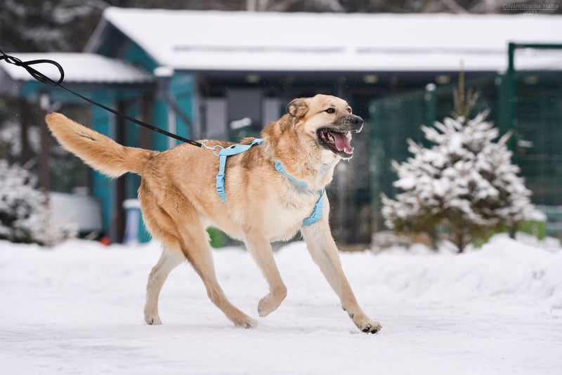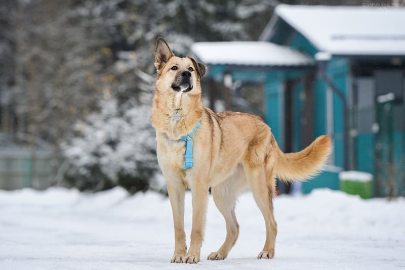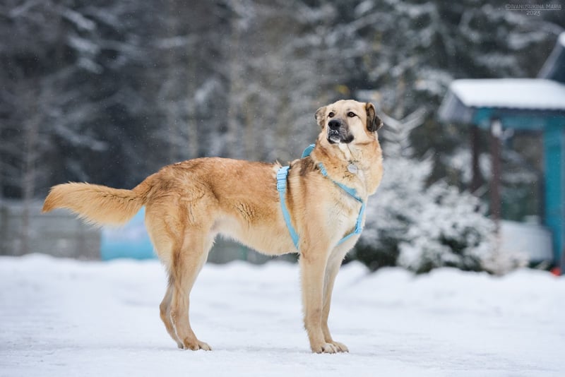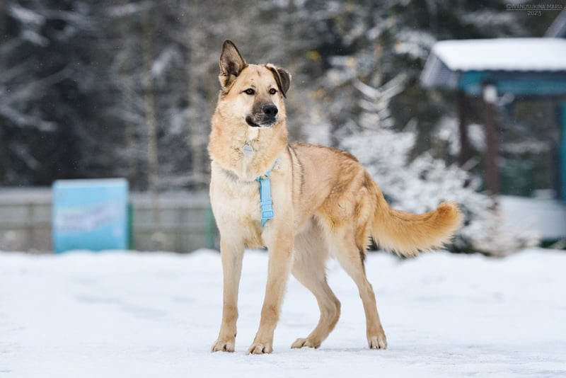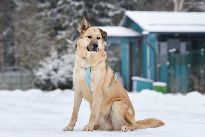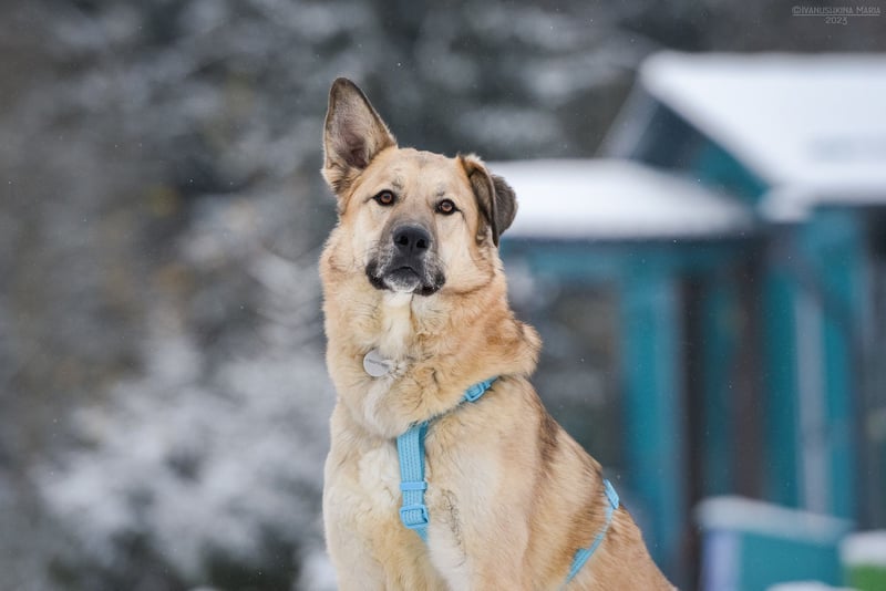 Anton wurde mit etwa 4 Monaten in einem Feld, weit entfernt von Siedlungen, gefunden. Sein Gesundheitszustand war sehr schlecht; er war ausgehungert und erschöpft. Es war ein Wunder, dass er noch am Leben war. Es wurden mehr als 100 Zecken auf ihm gefunden. Er wurde dann gehegt und gepflegt, bis er vollständig gesund wurde. Als einziges Andenken an die schlimme Zeit bleibt ihm sein hängendes Ohr, da es gebrochen war und sich nicht mehr aufrichtet. Leider wurde er bisher nicht gesehen und wartet immer noch im Tierheim auf sein Zuhause.