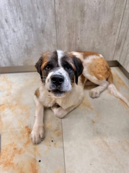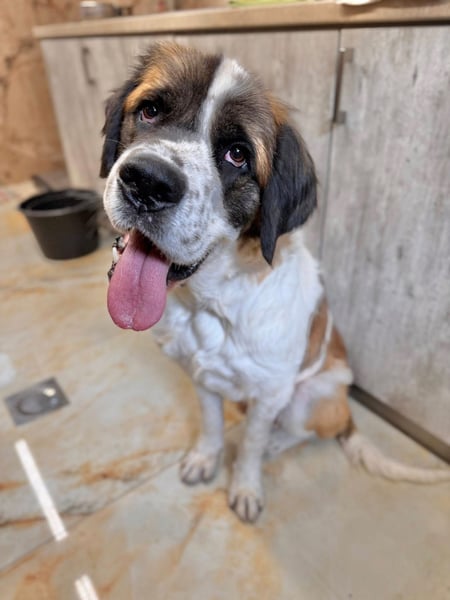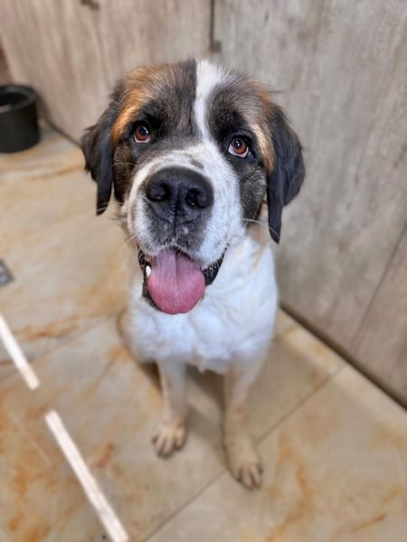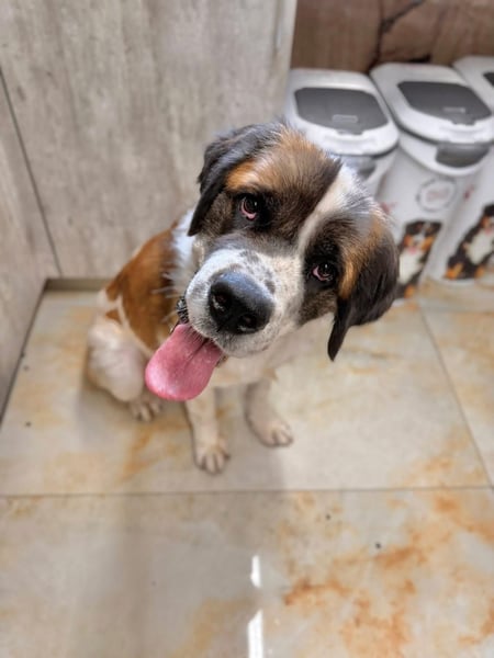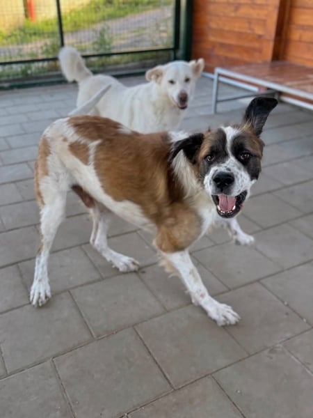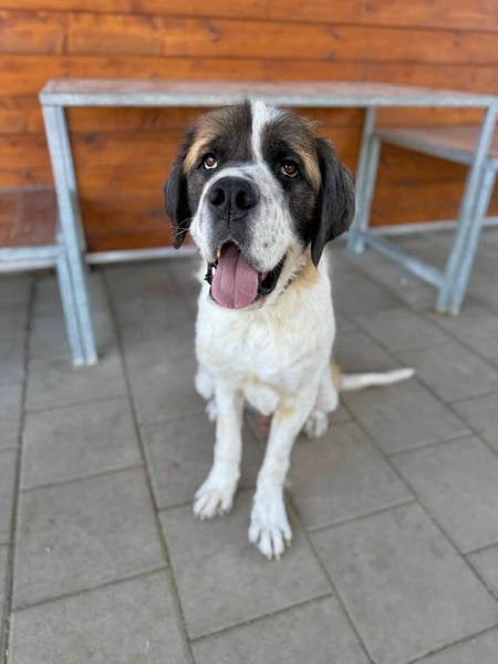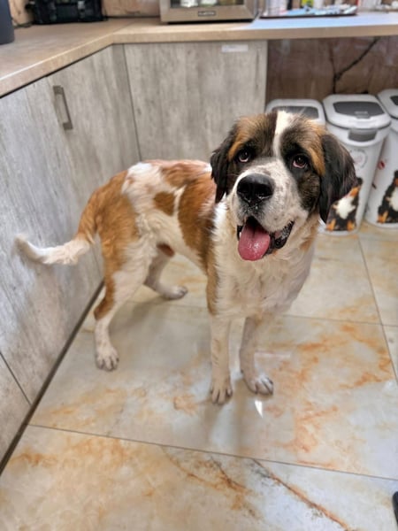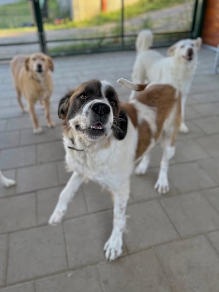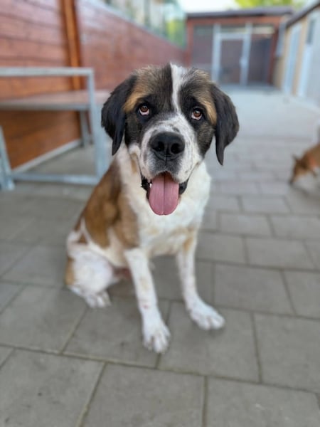 Barristan, liebevoll „Barris“ genannt, ist ein etwa 4-jähriger Rüde, ein Mix aus Bernhardiner und Moskauer Wachhund. Er stammt ursprünglich aus einer Roma-Siedlung und kam in sehr schlechtem Zustand zu uns – abgemagert auf nur 34 kg und nahezu ohne Fell. Doch Barris ist ein Kämpfer, und wir sind sicher: Er wird bald über 45 kg wiegen und sich vollständig erholen.