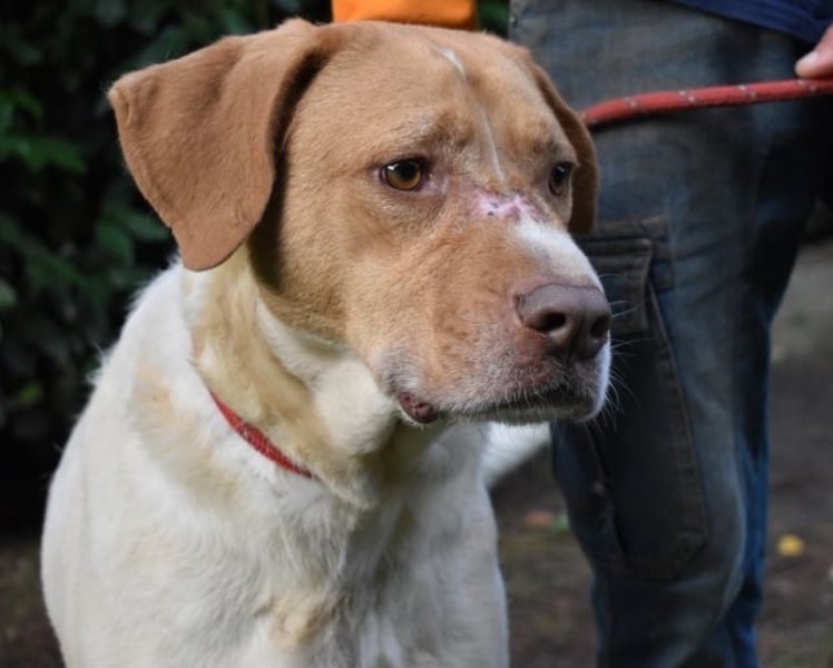 Auf meiner Schnauze habe ich Schorf und am rechten Vorderbein habe ich eine Beule, an der auch eine Verletzung ist. Das scheint aber nicht von einem Biss zu stammen. Wie schön wäre es, wenn jemand nachsehen würde, was genau das ist und ob es behandelt werden muss.