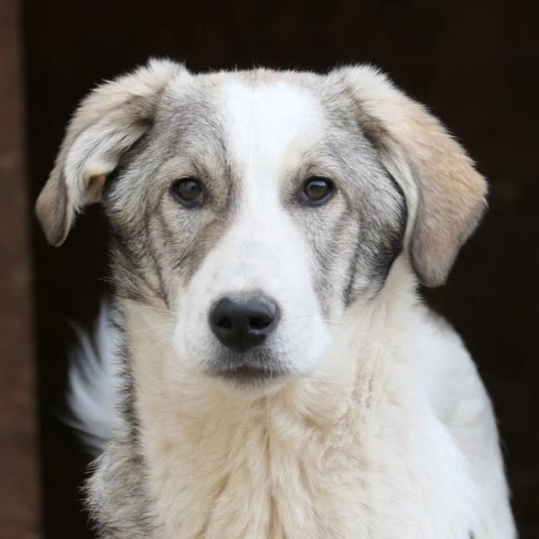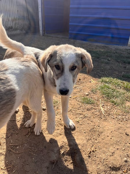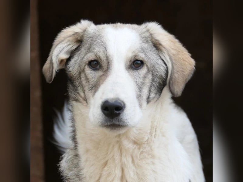 Helmi wurde im Oktober 2024 zusammen mit seinen sechs Geschwistern im Tierheim aufgenommen. Die sieben Herdenschutz-Mischlinge lebten bisher mit ihrer Mutter auf der Straße und hatten nur wenig Kontakt zu Menschen.