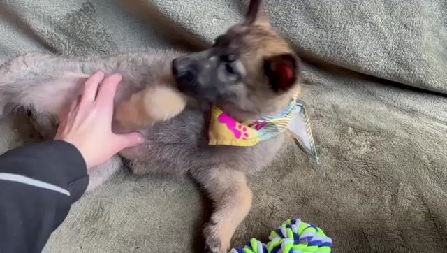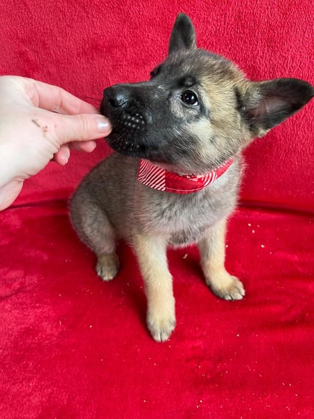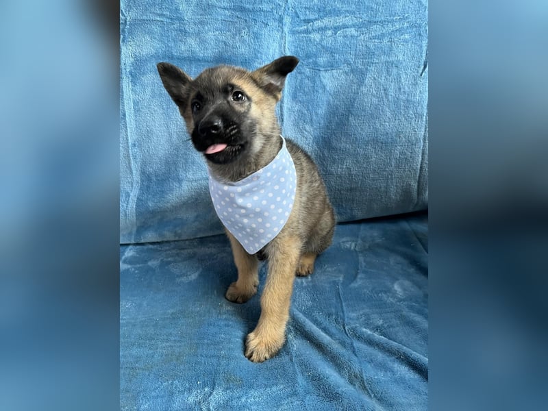 Als junger Schäferhund- oder Schäferhund-Mix-Welpe bringt Mogli viel Potential mit: Er ist wissbegierig, intelligent und lernt schnell.