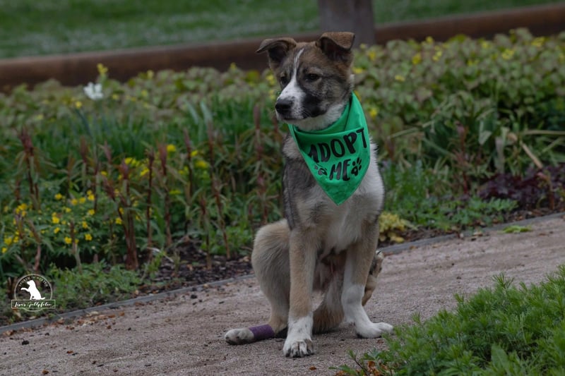 Valentin wurde im Februar 2025 im Tierheim Ari Paws aufgenommen. Zuvor lebte er auf der Straße. Anfangs gingen wir davon aus, dass er angefahren wurde. Doch Untersuchungen ergaben, dass er bereits mit dieser Fehlstellung am Bein geboren wurde. Er war stark abgemagert, litt an Zwingerhusten und Giardien und war beinahe apathisch. Seit seiner Rettung wird er tierärztlich behandelt und liebevoll aufgepäppelt und lebt inzwischen in einer Pflegestelle in 75443 Ötisheim. Valentin zeigt sich zunehmend aktiver und agiler, hat Muskulatur aufgebaut und sich gut in seine Pflegestelle eingelebt. Er ist inzwischen 61 cm groß, wiegt 18.2 kg und nimmt weiter zu (Stand: 04.08.2025).