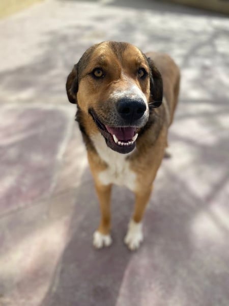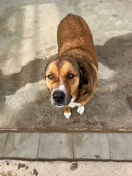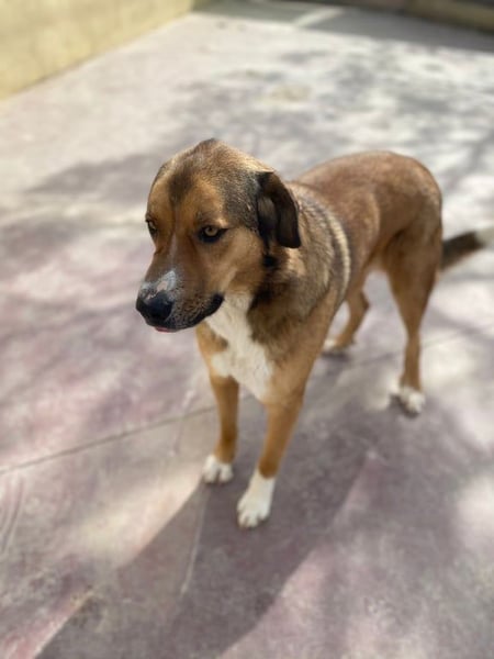 Tuna lebte zusammen mit einem Rüden bei ihrem Besitzer. Doch sie büxte mehrmals aus und wurde von den Anwohnern des Dorfes als streunender Hund gemeldet. Sie sagten, sie würde mehr auf der Straße leben als bei ihrem Besitzer. Also suchten wir den Besitzer auf und beschlossen, dass wir besser ein neues Zuhause für sie suchen, bevor sie bei ihren Ausflügen in schlechte Hände gerät. Der Besitzer willigte ein, den Rüden wollte er allerdings behalten. So kam Tuna zu uns ins Tierheim.