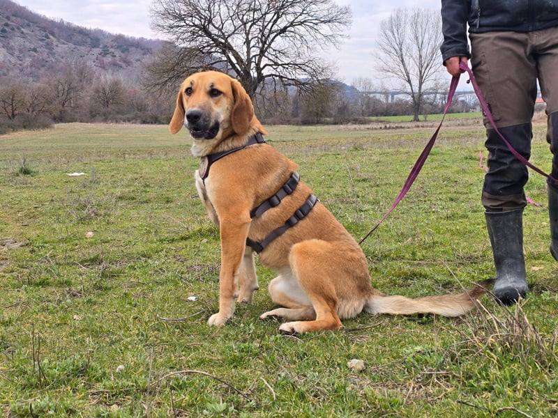 Eda ist eine junge Mischlingshündin, geboren im Februar 2024, die mit ihrer freundlichen, offenen Art sofort die Herzen erobert. Ausgewachsen wird sie eine Schulterhöhe von etwa 60–65 cm erreichen und rund 35 kg wiegen.