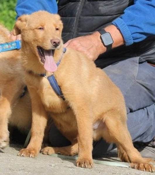 Wir haben keinerlei Berührungsängste mit Mensch und Tier. Charakterlich verhalten wir uns beide natürlich noch Welpen typisch. Wir sind sehr aufgeweckt, toben, kuscheln und spielen gerne. Und das am liebsten den ganzen Tag lang, wenn wir zwischendurch nicht schlafen und fressen müssten. Wir lernen auch schon die ersten Schritte in Richtung Stubenreinheit und Leinenführigkeit. Über die Verträglichkeit mit Katzen und Kindern ist noch nichts bekannt.