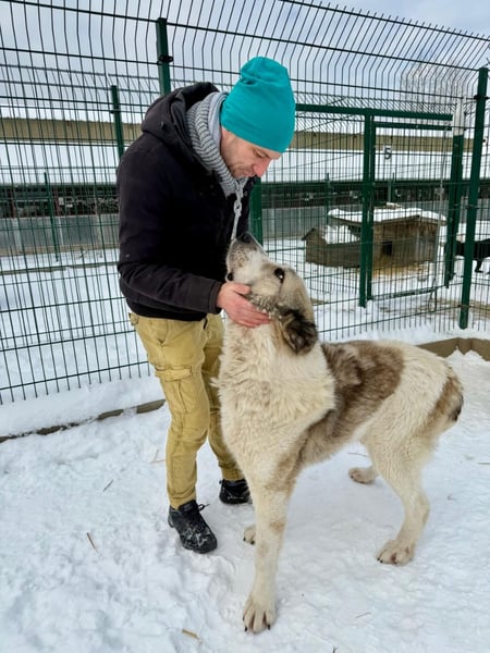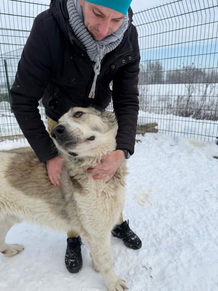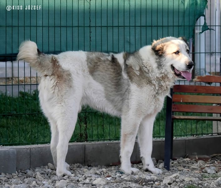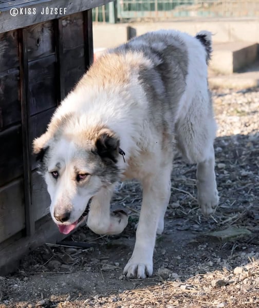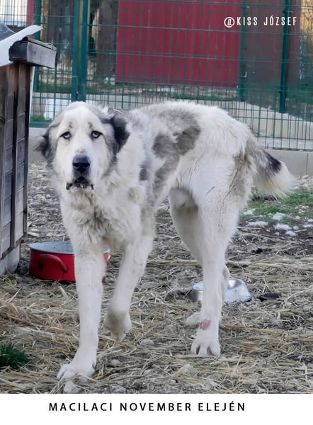 Macilaci wurde im November dank aufmerksamer Polizeibeamter gerettet. Sie hatten MASA verständigt, weil ihnen ein halbverhungerter, angeketteter Hund in einer gottverlassenen Gegend Sorge bereitete. Als der große Zentralasiat schließlich gesichert und ins Tierheim gebracht werden konnte, wog dieser riesige Rüde, dessen Normalgewicht bei ungefähr 50 bis 60 kg wiegt, nur noch 17 Kilogramm.