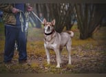 Er heult sogar nicht, wie alle Husky es so gerne mögen. Er ist einfach ruhig und lieb. Kevin fährt und bleibt ausgezeichnet ruhig im Auto und läuft sehr gut an der Leine. Er zeigt sich freundlich, egal welchen Geschlechts, den Artgenossen gegenüber.