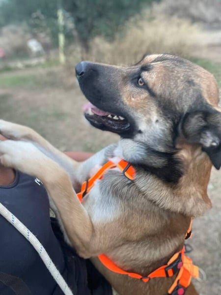 Gio ist ein ruhiger, überlegter und sanfter junger Rüde. Anfangs braucht er einen Moment, um Vertrauen zu fassen – doch sobald er merkt, dass er sicher ist, blüht er auf und zeigt seine zärtliche, zutrauliche Seite. Dann drückt er seinen Kopf unter deinen Arm und genießt jede Berührung voller Dankbarkeit.