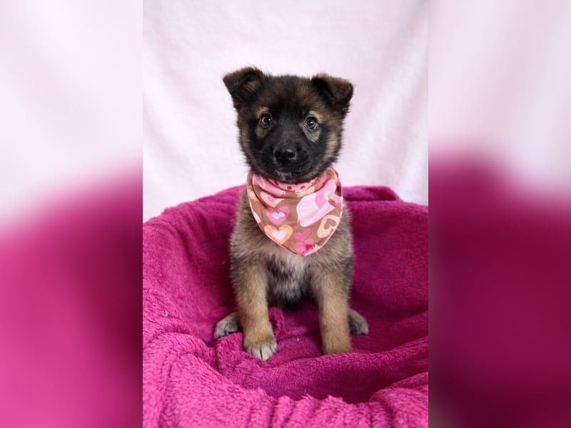Bibi wurde am 24.11.2025 (geschätzt) geboren, vermutlich Deutscher Schäferhund oder Schäferhund-Mix. Sie ist eine Hündin, gut sozialisiert und bereit, die Welt zu entdecken.