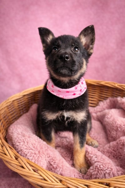 Heidi wurde am 24.11.2025 (geschätzt) geboren, vermutlich Deutscher Schäferhund oder Schäferhund-Mix.