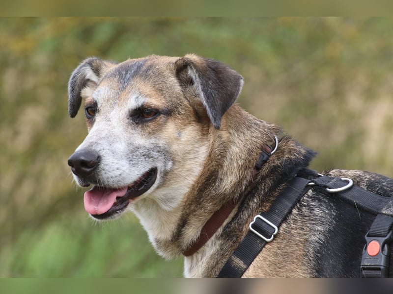 Rudi liebt es, draußen unterwegs zu sein. Egal ob allein oder mit anderen Hunden, die Natur zu genießen ist das A und O für ihn. Plantschen im Bach inklusive! In seiner Pflegestelle läuft Rudi mittlerweile ohne Maulkorb. Dieser sollte aber insbesondere in der Anfangszeit in seinem neuen Zuhause draußen und bei Besuch erstmal drauf bleiben.
