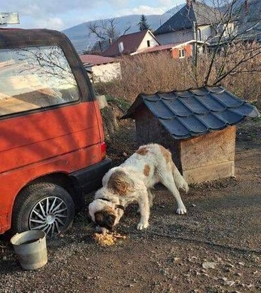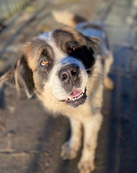 Die arme BETTY hatte bisher absolut kein hundegerechtes Leben. Sie wurde von ihren Besitzern ausschließlich auf dem Hof an der Kette gehalten und bekam nur sporadisch etwas zu fressen. Dort lebte sie vor sich hin, ohne menschlichen Kontakt, keine liebende Familie, keine streichelnden Hände, was für einen so anhänglichen Hund wie dem Bernhardiner schrecklich ist. Zum Glück wurde Bea auf den Fall aufmerksam und holte sie von dort weg. Jetzt lebt sie im Shelter und wird gut betreut.