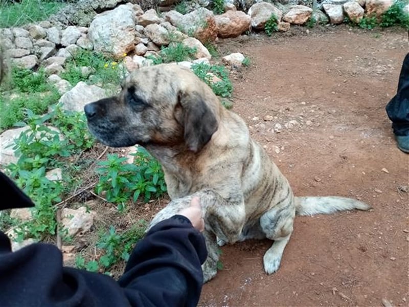 Rüde Tigre kam durch die Polizei zu uns ins Tierheim. Sein Fell ist wunderhübsch gestromt. Tigre ist ein lieber, ruhiger Hund.