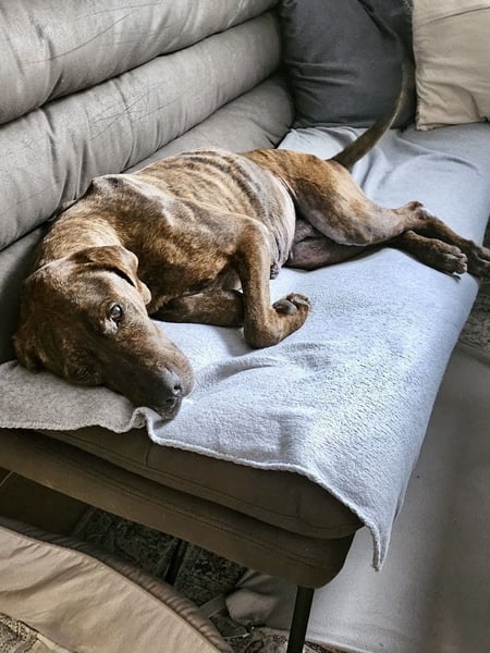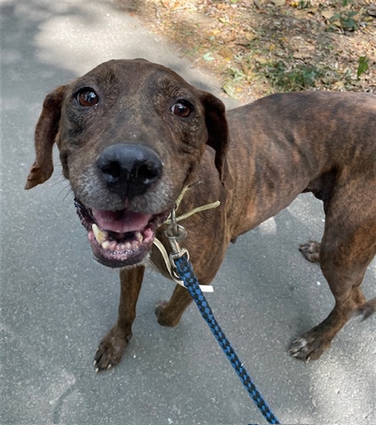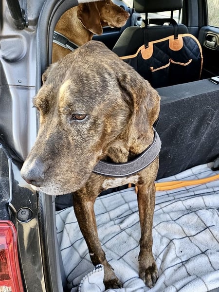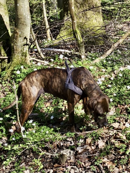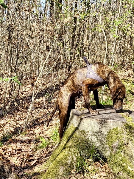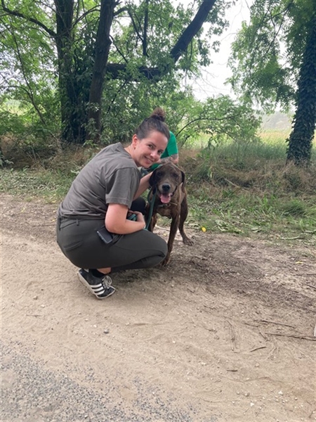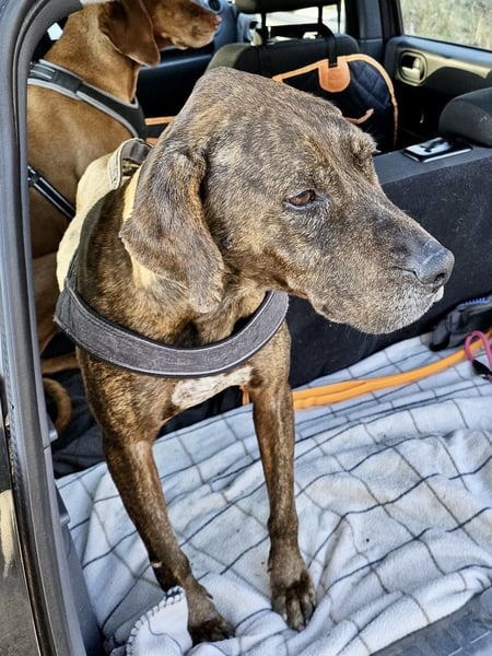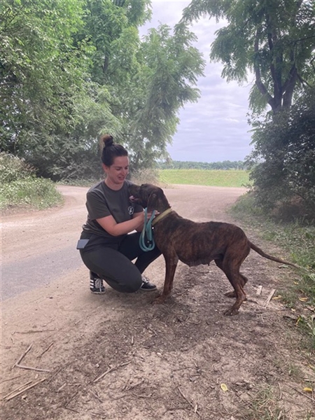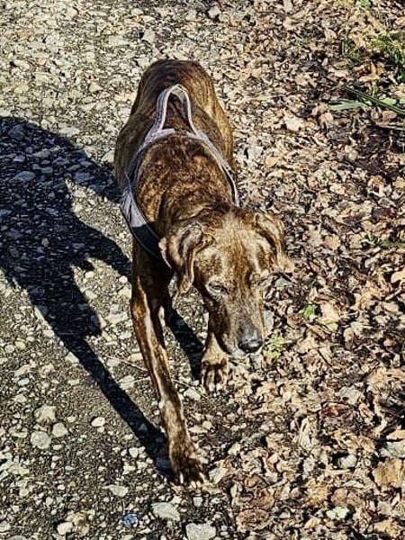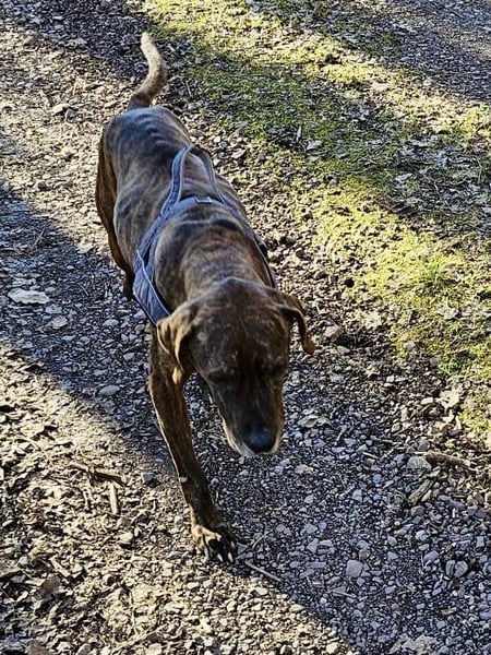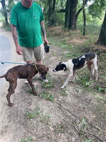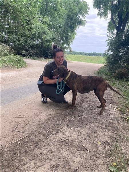 Jadviga ist ein Jagdhundmischling. Wer an der Entstehung beteiligt war? Vielleicht ein Schweißhund? Vielleicht ein Vizsla? Aber woher die Streifen? Ein Plotthound? Auf jeden Fall ist sie ein wirklich feines Hundemädchen, das nicht mehr die Beschäftigung eines jungen Jagdhundes benötigt, aber durchaus für Spaziergänge zu haben ist. „Best ager“ sozusagen. Bei Streicheleinheiten wird sie nicht nein sagen!