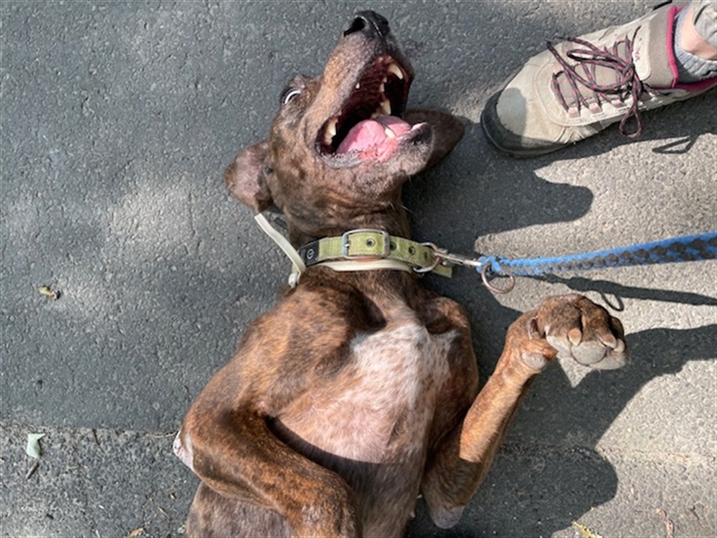 Außerdem gehe ich gut an der Leine und habe keine Angst im Straßenverkehr.