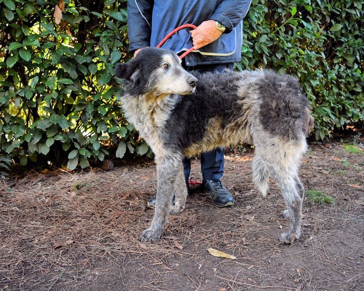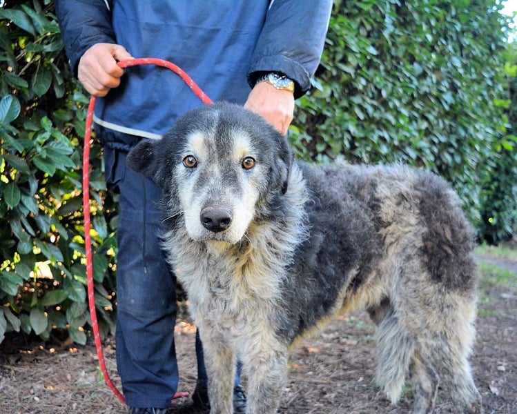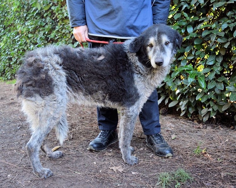 Auch körperlich trägt Declan noch Spuren seiner Vergangenheit. Er ist sehr dünn, man möchte ihn am liebsten sofort in eine weiche Decke wickeln, ihn füttern und verwöhnen, bis seine Seele warm wird und sein Körper stark. Seine eingewachsenen Wolfskrallen wurden inzwischen gekürzt – ein kleiner, aber wichtiger Schritt auf seinem Weg in ein schmerzfreies Leben.