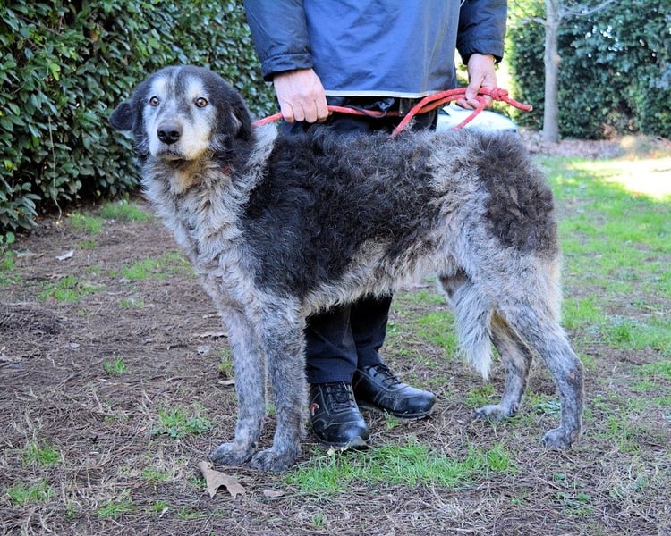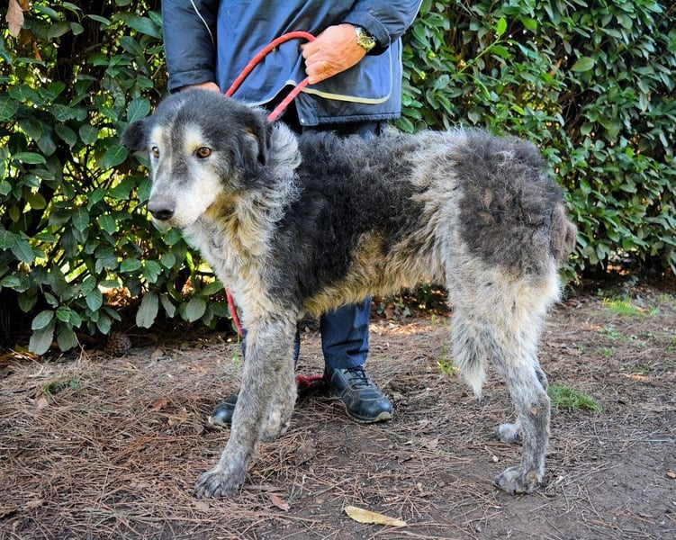 Genauso ist es in Declans Fall. Der junge Rüde wurde im zarten Alter von einem Jahr in einem erbärmlichen Zustand aufgegriffen. Leishmaniose und Ehrlichiose hatten seinem Körper fürchterlich zugesetzt. Er war übersät mit kahlen blutigen Stellen, kraftlos und abgemagert.