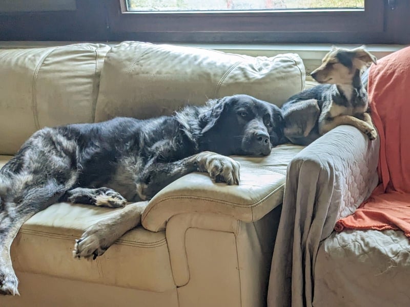 Püppi lebt mit mehreren, mehrheitlich deutlich kleineren und charakterlich ‚anders gestrickten‘ Hunden beiderlei Geschlechts einvernehmlich zusammen.