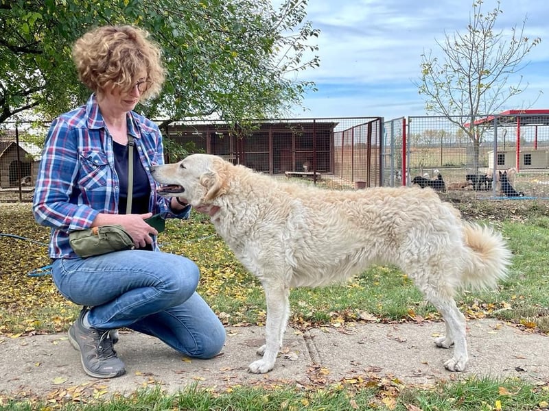 Die liebe Bodor lebt seit Welpenalter im Tierheim Koborka in Mesötúr (Ungarn). Wir haben sie jetzt das dritte Jahr in Folge im Tierheim erleben dürfen. Aus der anfangs scheuen, vorsichtigen Hündin ist im Laufe der Zeit eine aufgeschlossene, freundliche und sehr menschenbezogene Hundedame geworden. Wer ihr einmal in die sanften Augen blickt, spürt sofort, wie sehr sie sich nach einem eigenen Zuhause sehnt. Bodor ist kinderlieb, genießt jede Aufmerksamkeit und zeigt sich im Tierheim als verschmuste und loyale Begleiterin. Trotz all ihrer Freundlichkeit darf man jedoch nicht vergessen, dass Bodor ein Herdenschutzhund ist – sie braucht daher Menschen, die ihre rassetypischen Eigenschaften verstehen und respektieren. Für Bodor wünschen wir uns ein Zuhause, in dem sie Familienanschluss hat, aber auch die Möglichkeit, im Garten ihre Umgebung zu überblicken und zur Ruhe zu kommen. Ein Leben in der Stadt oder in reiner Wohnungshaltung wäre nichts für sie – sie träumt von einem Haus oder Hof mit sicher eingezäuntem Garten, wo sie endlich ankommen darf und ihre große Liebe verschenken kann. Wer Bodor adoptiert, bekommt nicht nur eine wunderschöne Hündin, sondern eine treue Freundin fürs Leben.