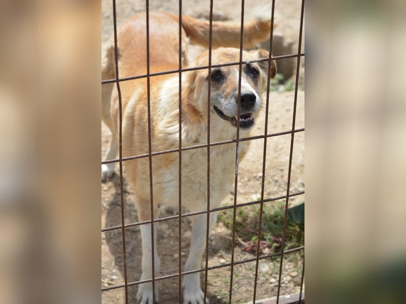 Panina ist eine sehr ruhige, liebe und zurückhaltende Hündin. Sie lebt in einem gemischten Rudel. Am Gitter kommt sie freundlich zu einem hin wenn man sich ihr nähert.