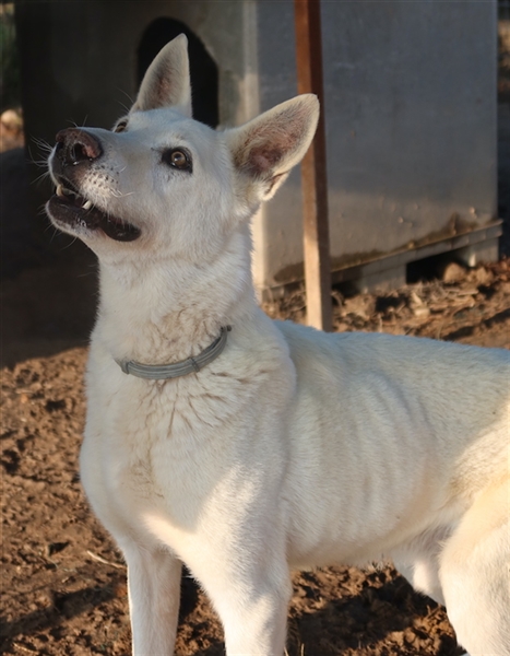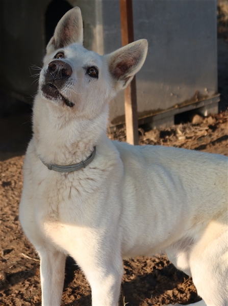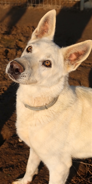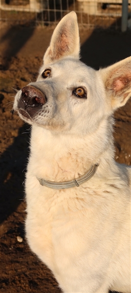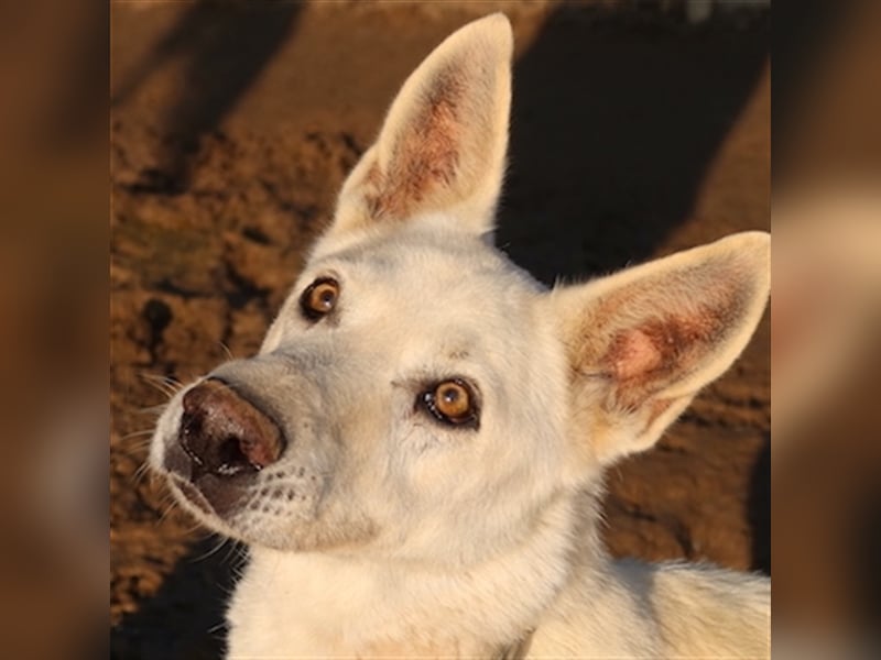 Dieser charmante Vierbeiner ist ein hübscher Rüde mittleren Alters von imposanter Größe mit ca. 60 cm Schulterhöhe. Sein Fell strahlt in reinem Weiß und seine hochstehenden Ohren verleihen ihm das Aussehen eines majestätischen weißen Schäferhundes. Luuks hellbraune Augen mit schwarzer Umrandung und die dunkle Nase vervollständigen dabei das besondere äußere Erscheinungsbild. Seine verspielte Art macht ihn zu einem bezaubernden Begleiter, der das Herz eines jeden Tierfreundes im Sturm erobern könnte. Luuk ist nicht nur menschenfreundlich, sondern bisher auch verträglich mit seinen Artgenossen. Er hat zudem gelernt an der Leine zu laufen, was ihn zu einem angenehmen Spaziergehpartner macht. Luuk sehnt sich nach einem festen Zuhause, in dem er die Liebe und Aufmerksamkeit findet, die er verdient. Ein Ort, an dem er seine verspielte Seite entfalten kann und gleichzeitig Geborgenheit erfährt. Wenn Sie unserem Luuk ein neues Leben in einem liebevollen Zuhause schenken möchten, könnte dieser eine großartige Ergänzung für Ihre Familie sein. Füllen Sie hierzu gerne unsere Selbstauskunft aus.
