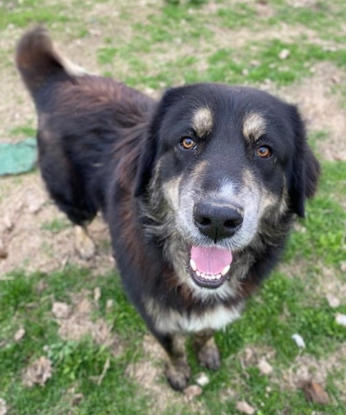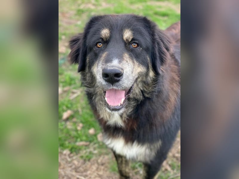 Sein Wesen ist freundlich und menschenbezogen, trotz der rauen Startbedingungen seines Lebens. Er ist verschmust und zeigt sich verträglich mit seinen Artgenossen. Mit seinem dichten, dunklen Fell, das helle Akzente hat, sowie den dunklen Augen ist er ein hübscher Kerl, der sich zu einem stattlichen Rüden entwickelt hat.