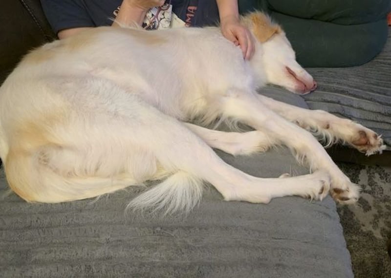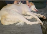Bei Balda handelt es sich um eine bildhübsche Hundedame mit einem sehr weichen, cremefarbenen Fell. Sie hat ausdrucksstarke helle Augen. Inzwischen ist sie zu einer stattlichen Hundedame herangewachsen.