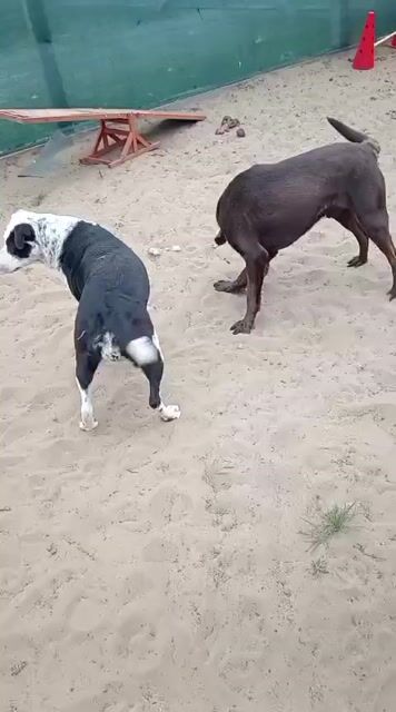 Mit anderen Hunden versteht sich Bruno gut und zeigt sich sozial und verträglich.