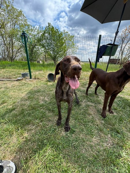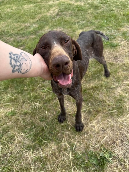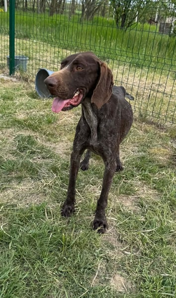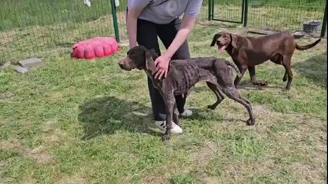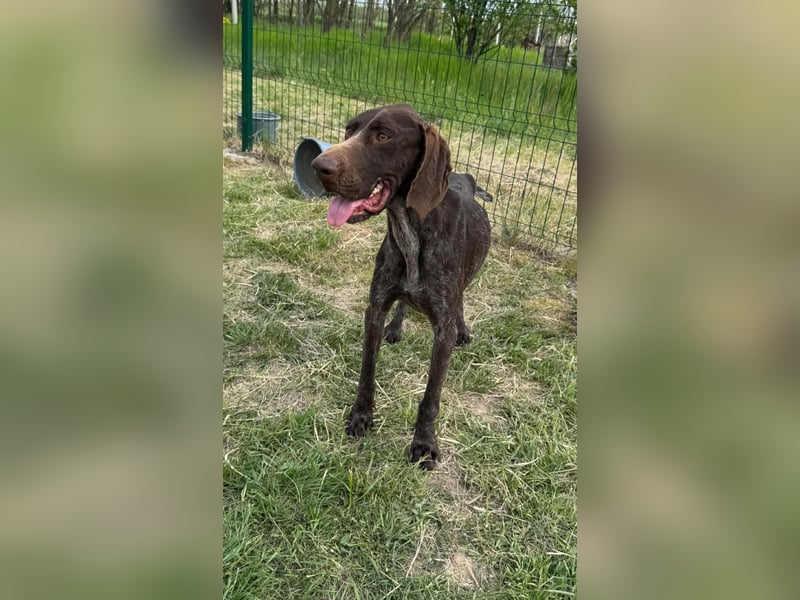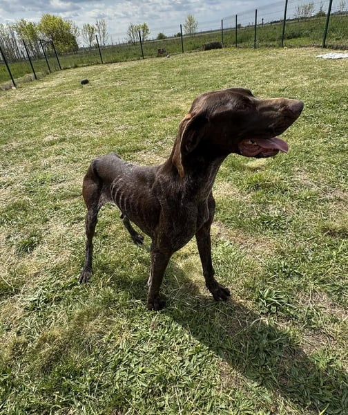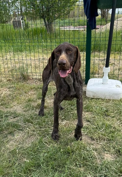 Mendi ist eine wunderschöne Deutsch-Kurzhaar-Hündin, geboren im Juni 2022, etwa 60 cm groß und wiegt momentan nur noch 22 kg. Sie ist eine äußerst freundliche und menschenbezogene Hündin, die jede Zuwendung genießt und sich eng an ihre Bezugspersonen bindet.