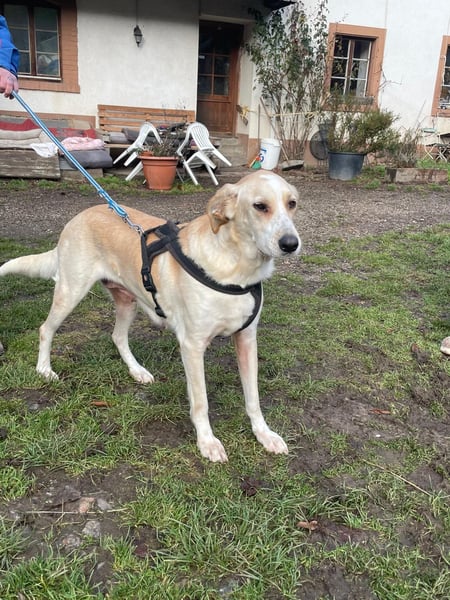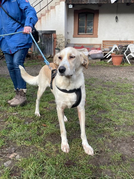Stattliche, menschenliebe, mit Artgenossen aber nur bedingt verträgliche (nicht mit Hündinnen) Mischlingsdame mit möglicherweise herdenschutzhundlichen Vorfahren auf der dringenden Suche nach einem Zuhause.