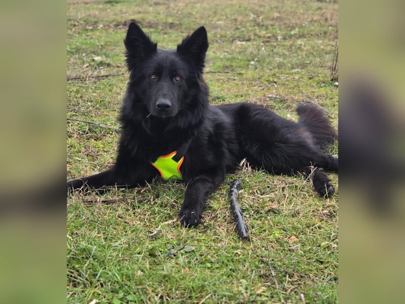 Wolfie ist ein wunderschöner schwarzer langhaariger Kastrierter Rüde mit einem Fell wie Samt und Seide.