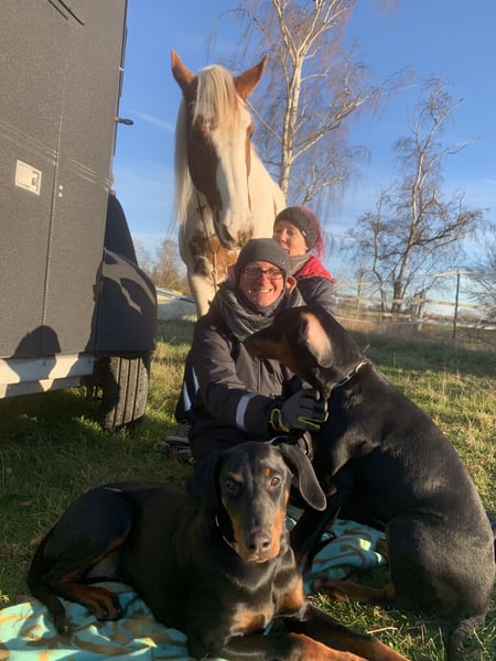 Belle und ihr Bruder Toffi waren vom ersten Tag an überall mit dabei. Sie kennen große Menschenmengen, sind bei uns im Trainingssaal beim Tanzunterricht dabei, bei allen Reisen und sonstigen Aktivitäten. Sie kennen Pferde und würden sich auch super als Begleithund beim reiten eignen. Auch wenn sie im Haus oder im Gebäuden sehr ruhig und entspannt sind, benötigen Sie täglich ihre Aufgabe draußen.