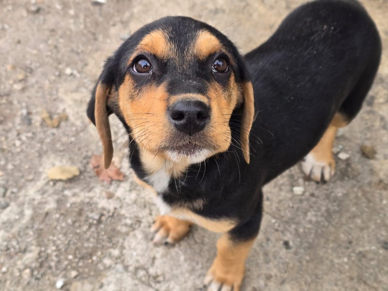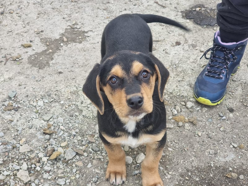 Ausgesetzt und auf sich alleine gestellt – so wurde der kleine Rüde gemeinsam mit seinen 3 Geschwistern gefunden. Ein Glück konnten alle gesichert werden und warten nun auf ihre große Chance.