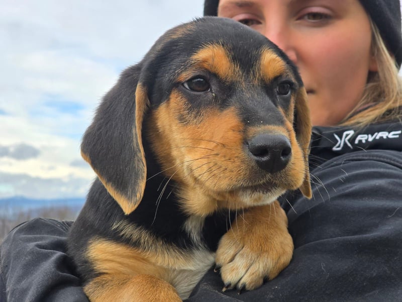 Potato ist ein lebensfroher, freundlicher und Nähe suchender Welpe. Dabei ist er alterstypisch natürlich noch sehr verspielt.