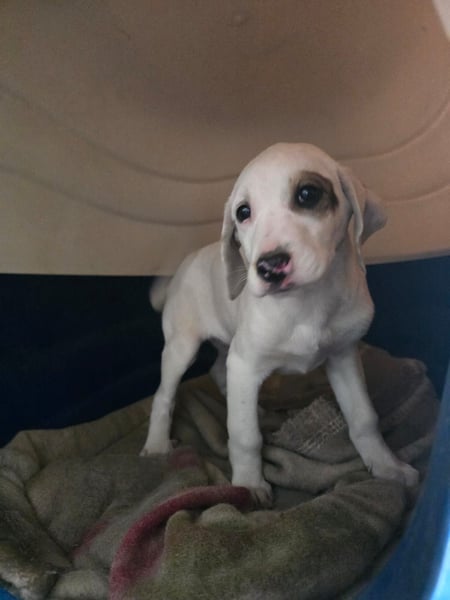 Die kleine Snow wurde gemeinsam mit ihren Geschwistern auf einem Spielplatz gefunden – ausgesetzt und sich selbst überlassen. Gottseidank konnten die drei Welpen gesichert werden.
