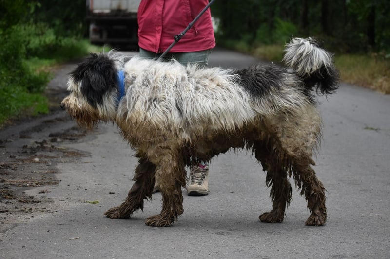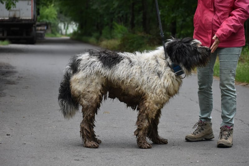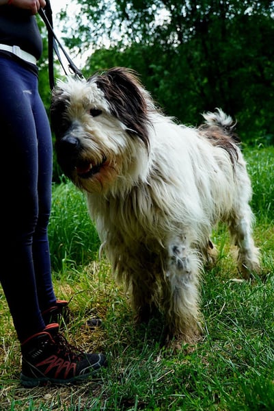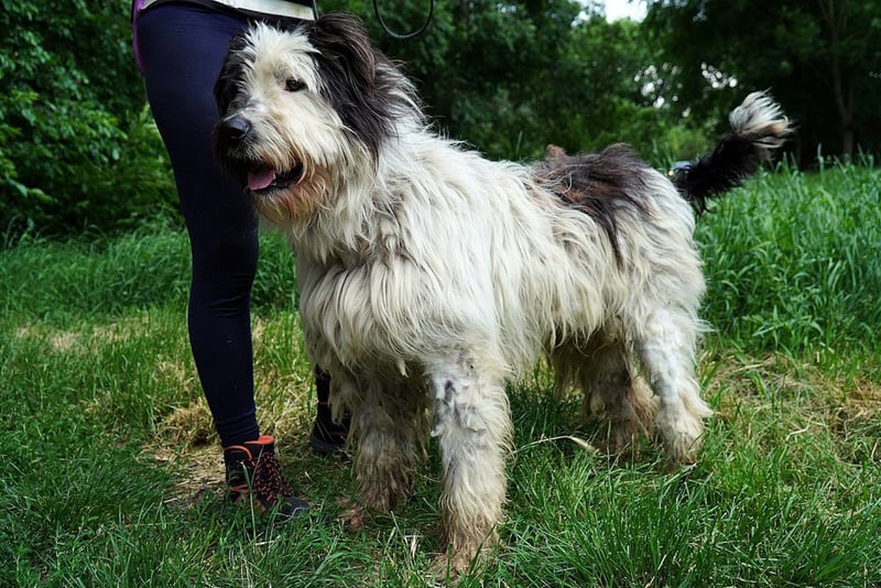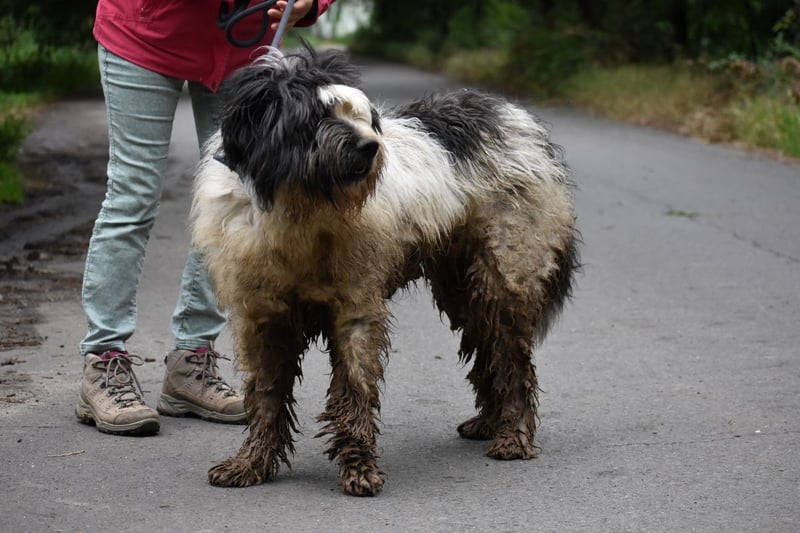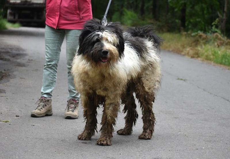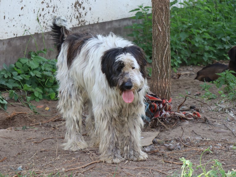 Leider sieht Bobo auf seinen Fotos immer irgendwie schmuddelig aus. Im Tierheim ist es immer dreckig, oft nass und matschig. Sein weißes Fell geht da leider völlig unter, dabei ist er ein wirklich schöner Hund. Er benötigt allerdings auch wirklich regelmäßige Fellpflege.